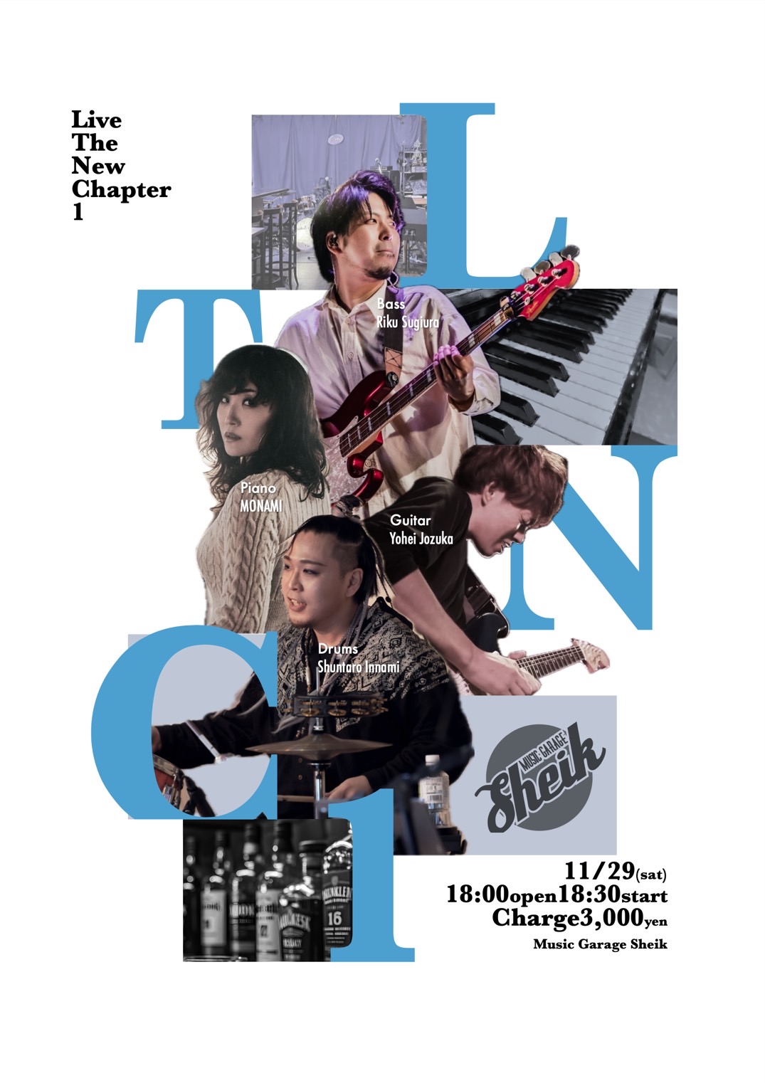 | 29 sat | 【Live The New Chapter 1】Jazz,Funk,Soul Live Open18:00 Start18:30 Charge3000yen+Order MONAMI(Pf) 定塚洋平(Gt) 杉浦陸(Ba) 印南俊太朗(Dr) 小学生以下 1ドリンクのみ (未就学児無料) ご予約は>>こちらのフォームから申込下さい 問い合わせ先 shuntaro.innami@gmail.com 企画 INNAMI MUSIC  |