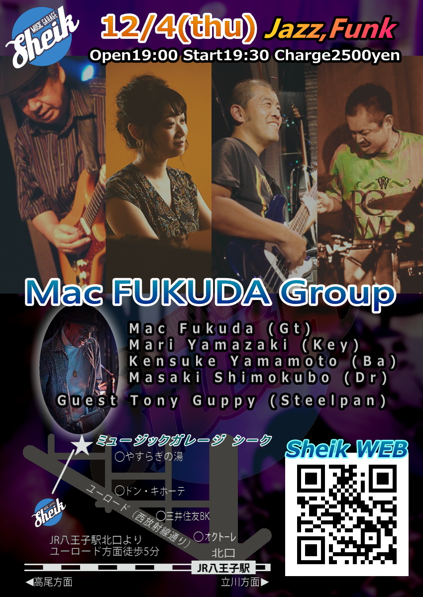| 12 sun | 【Sheik JAM】Jam Session Open18:00 Close23:00 Jam18:30-22:00 Charge2000yen Blues,Jazz,Funk,Soul,And more! Come and Join Us! ブラックミュージックを中心としたジャムセッションです。 ご参加お待ちしています(^-^)/ HOST BAND / Darek Jackson (Ba) Mac Fukuda (Gt) Naoko Kaji (Sax) Ayako Yoshihara (Dr) ※ジャムセッション ハウスバンドや他の参加者と一緒に演奏を楽しむ営業です。  |